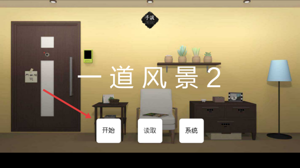 1、在游戏初始界面,点击开始按钮进入一道风景2场景,快速熟悉房间布局,留意门、桌椅、架子等可交互物件。