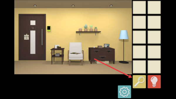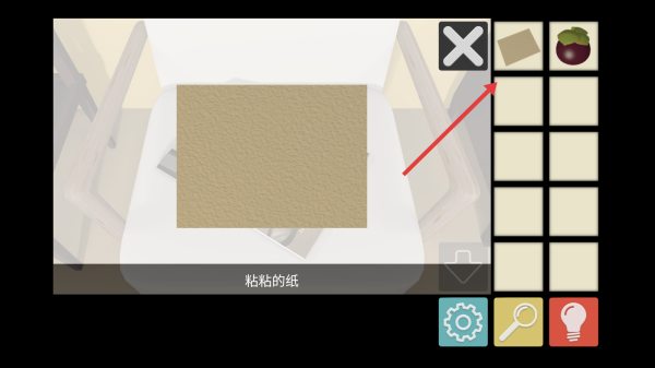 2、点击右下角放大镜按钮开启探索模式,仔细查看各物品细节,发现粘粘的纸等道具后,将其收入右侧背包栏。