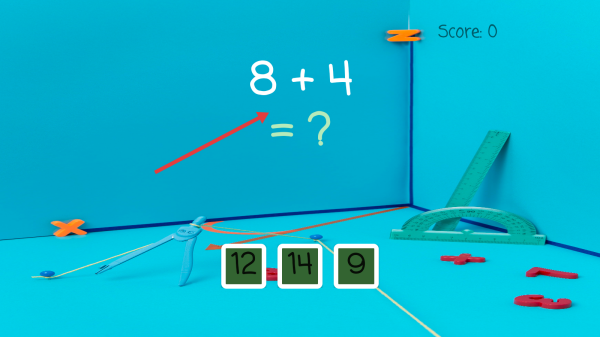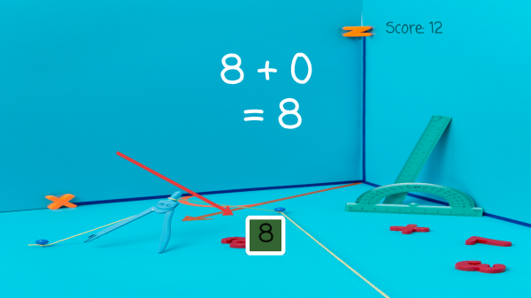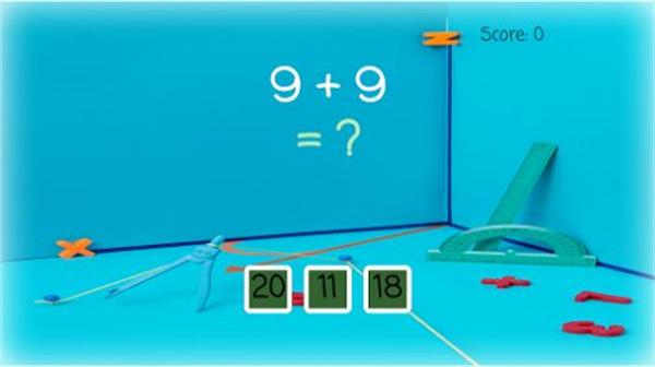 1、开局,认真观察界面呈现的加法运算式,凭借心算能力快速算出结果,精准锁定正确数字方块。