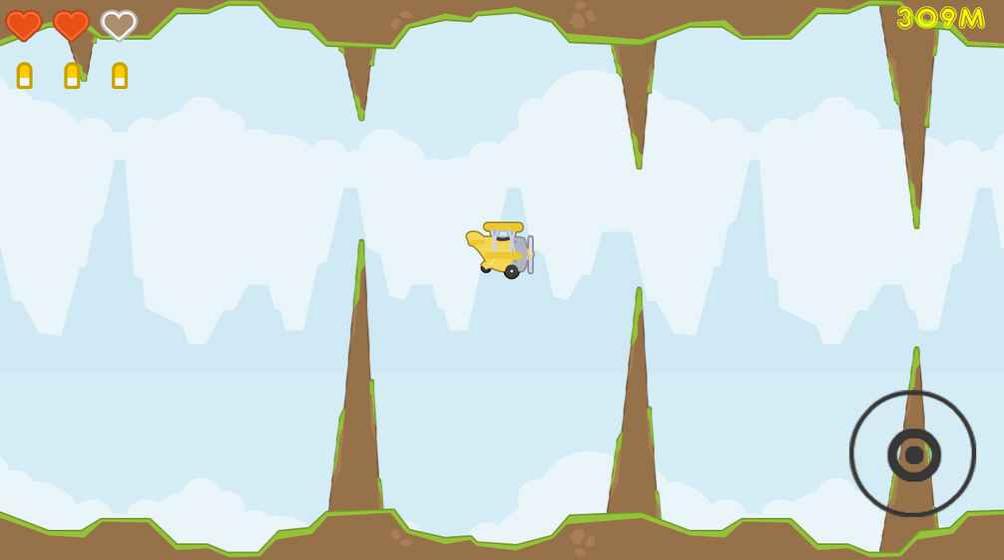 3、顺着地形引导飞机前行,借助操作规则灵活躲障碍、精准击目标,持续推进关卡,努力让飞机飞行更远。