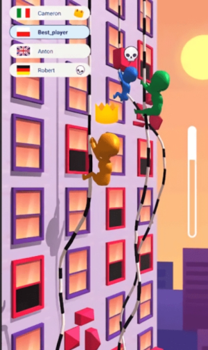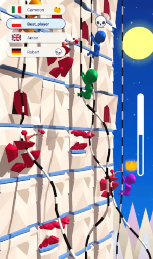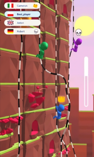 3、多人实时对战系统,支持2到8名玩家同场竞技,实时显示对手攀爬进度与位置,并设有道具互动机制,在保持竞技公平性的同时增添策略趣味。