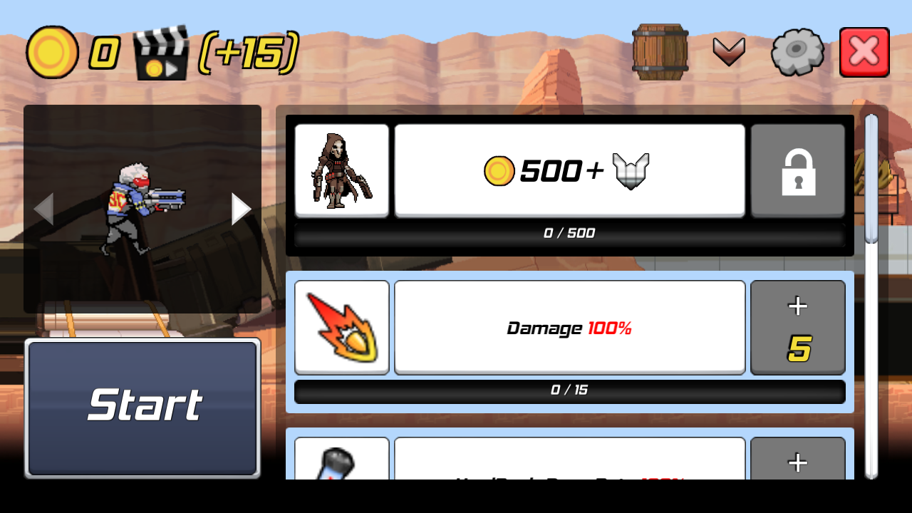 1、选好角色,点击Start,消耗对应资源,开始游戏战斗。