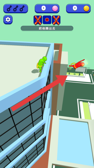 2、策略投掷对手:观察对手的位置与场景边缘,运用技巧将对手逼至边缘,找准时机发力将其扔出玩法的区域。