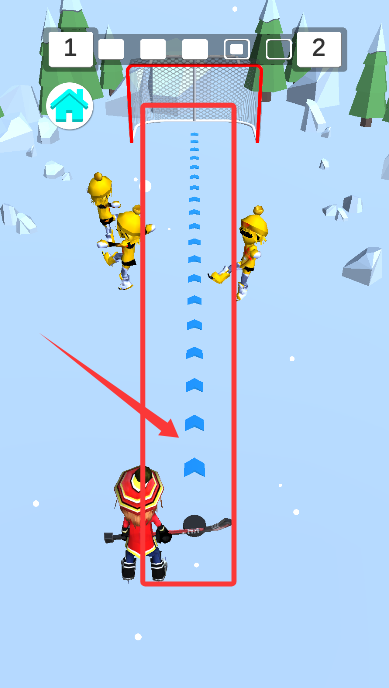 2、操作时可跟随场地的指引,通过滑动让冰球突破对手的防御阵型。