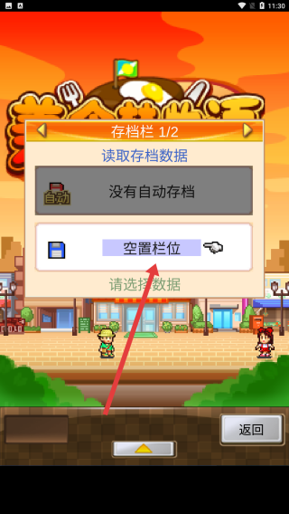 2、进入存档栏,按照箭头提示,选择空置栏位创建新存档,开始属于自己的餐厅经营游戏进程。