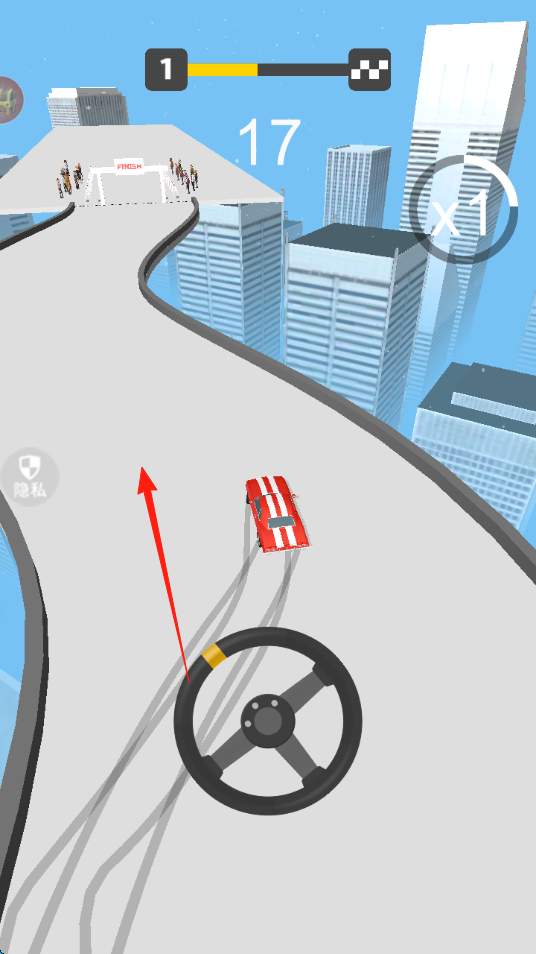 1、进入首图赛道,双手操控方向盘,依据箭头指引方向,紧盯弯道,轻打方向、微调车速,避开障碍,稳步向终点推进。