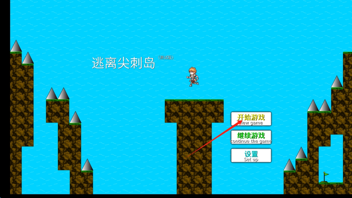 1、在逃离尖刺岛启动页,点击“开始游戏”,进入冒险关卡,点击按钮开始游戏。