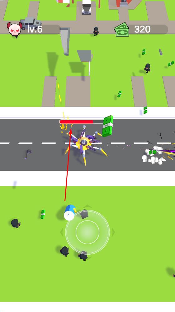 2、武器收集升级:击败敌人拾取钞票,为机甲装配武器,将两把同级武器合成高级装备,提升战力应对更强挑战。