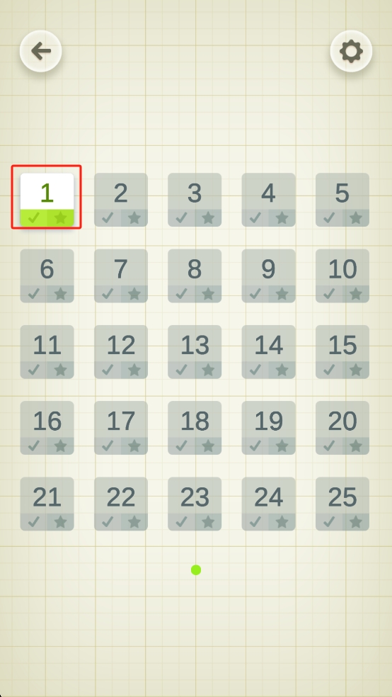 1、进入关卡选择界面,这里我们需要点击屏幕上的按钮选择第一关,然后即可进入对应的拼图挑战。