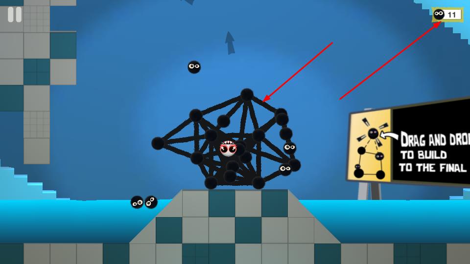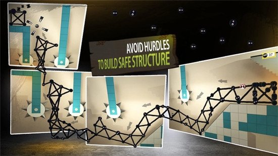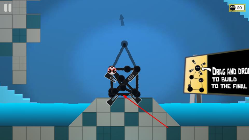 2、在关卡内按提示拖拽部件搭建桥梁结构,确保稳固,让带眼睛的角色顺利通行。