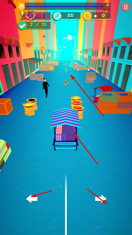1、躲避障碍物:在奔跑过程中,通过点击屏幕控制角色跳跃或滑行,躲避各种障碍物,精准的时机把握是成功跑酷的关键。