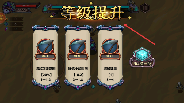3、胜利后等级提升,选攻击范围、冷却时间等增益强化,带效果挑战新关卡。