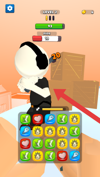 3、处于LEVEL2,角色上方显示自身血量93,敌人血量10,是融合合并与动作战斗的休闲。