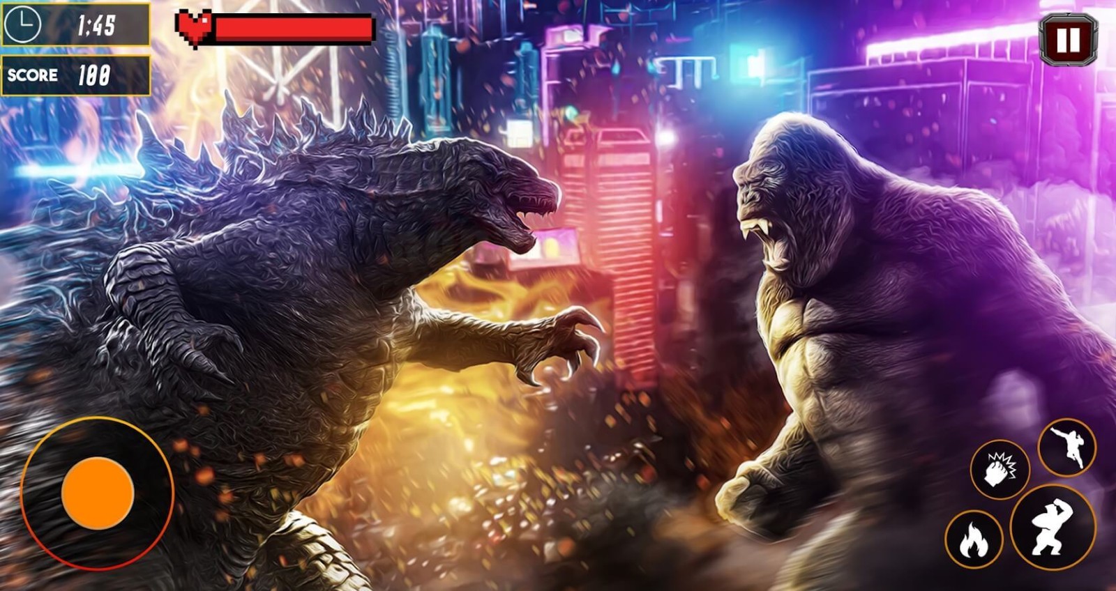 哥斯拉粉碎之城是一款充满震撼力的动作格斗佳作,将经典怪兽电影中的史诗对决完美搬入世界,你将有机会化身为影史经典巨兽——金刚或哥斯拉,踏入高楼林立的现代都市展开惊天动地的战斗,城市的每一寸空间都将成为你们的战场,摩天大楼在巨物碰撞中摇摇欲坠,街道在沉重步伐下碎裂变形。