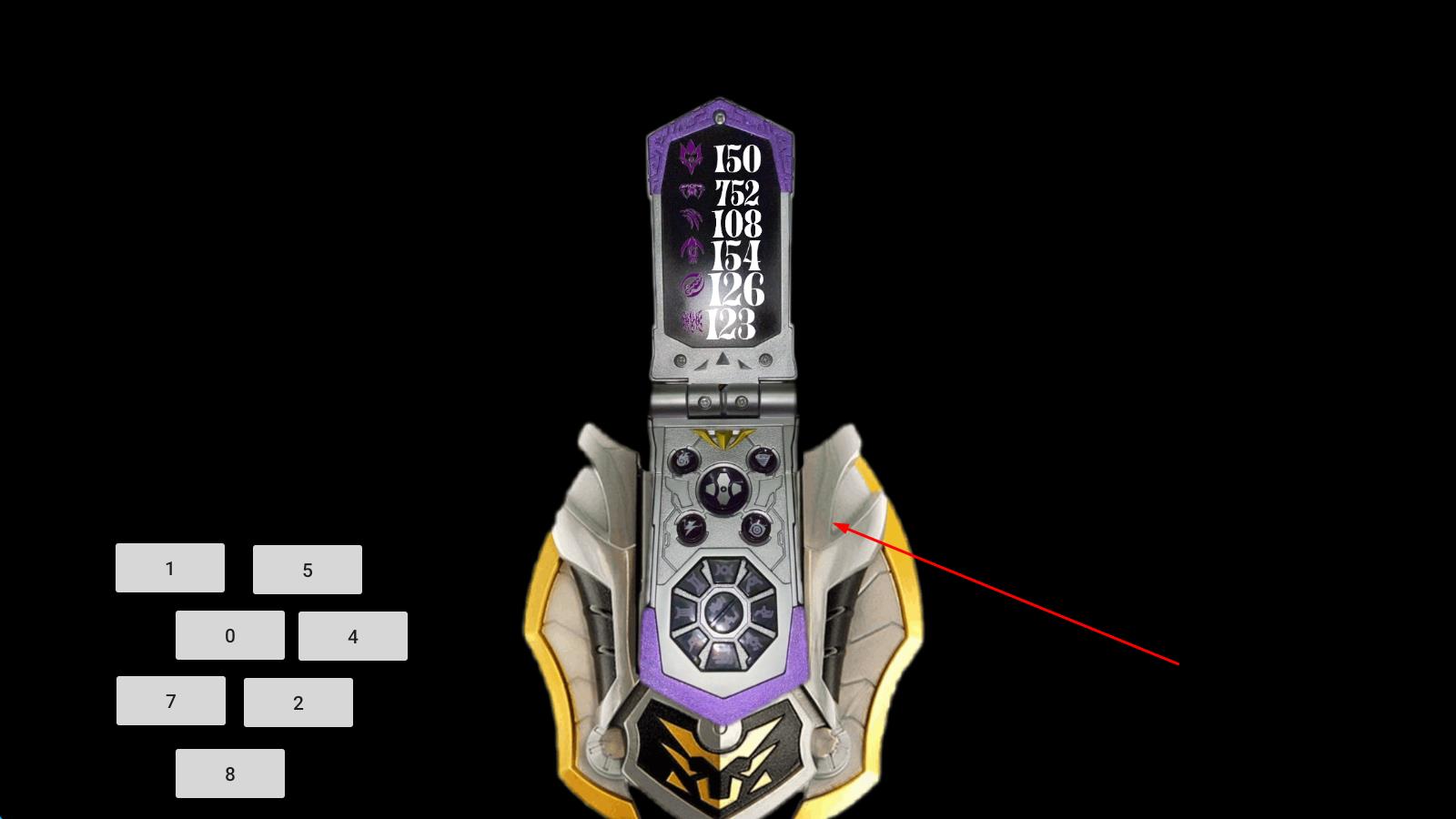 1、打开游戏后,面对模拟修罗铠甲召唤器的界面,按照记忆中的变身顺序点击对应数字,开启变身的第一步。