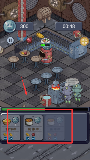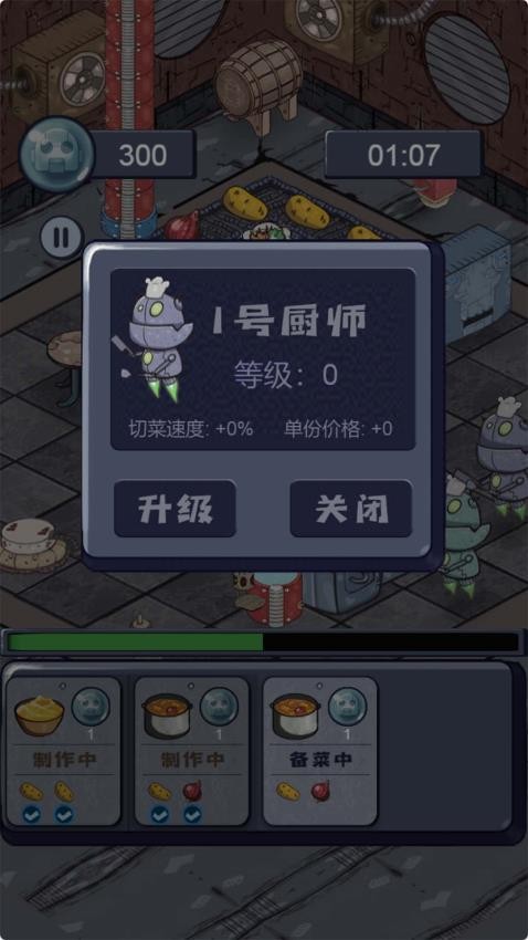 1、开局先了解各类机器人的功能,合理安排烹饪、切菜等岗位,确保生产流程顺畅,快速完成初期订单积累资金。