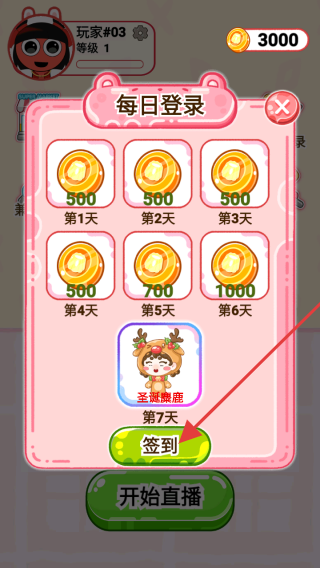 1、在游戏界面打开每日登录面板,点击签到按钮,可按天数依次领取金币等奖励,连续签到7天能获圣诞麋鹿等特殊奖励,积累游戏资源。
