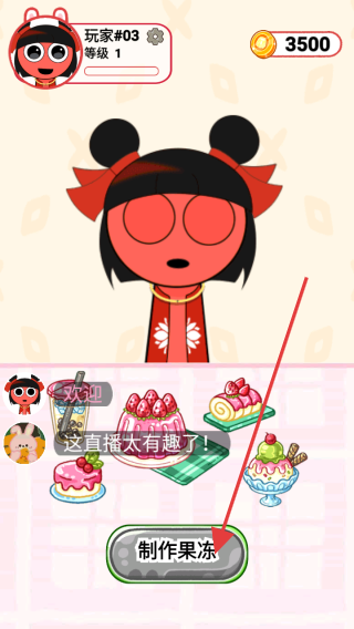 2、完成签到后,点击开始直播进入直播场景,再点击制作果冻按钮,开启果冻制作环节,进入游戏核心玩法流程。