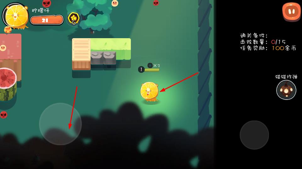 3、战斗时通过虚拟摇杆操控角色,利用碰碰炸弹,留意通关条件,合理规划战斗方式。