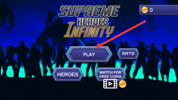 1、在游戏主界面,按照箭头提示,点击PLAY按钮,进入英雄对战选择环节,开启战斗冒险。