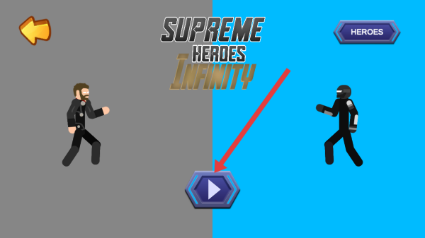 2、在英雄对战选择界面,通过箭头指引方向,点击中间播放按钮,装备展开与敌方英雄的对决。