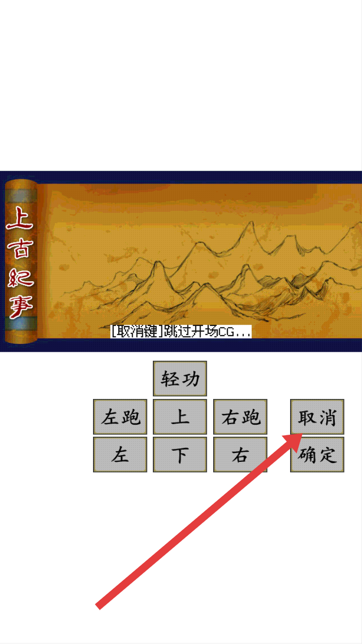 1、开场的阶段界面显示上古纪事的剧情CG,若想快速进入游戏,可点击右侧按键区的取消键。