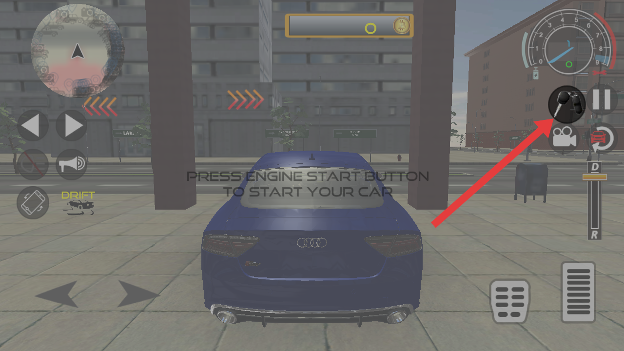 1、启动车辆需要点击屏幕右侧黑色引擎启动按钮,激活汽车动力,解锁驾驶操控权限。