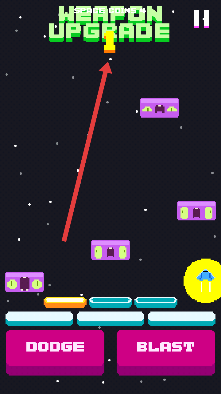 1、开始游戏后,需点击右下角BLAST的按钮,选择攻击模式,遇到敌人就点击按钮进行发射。