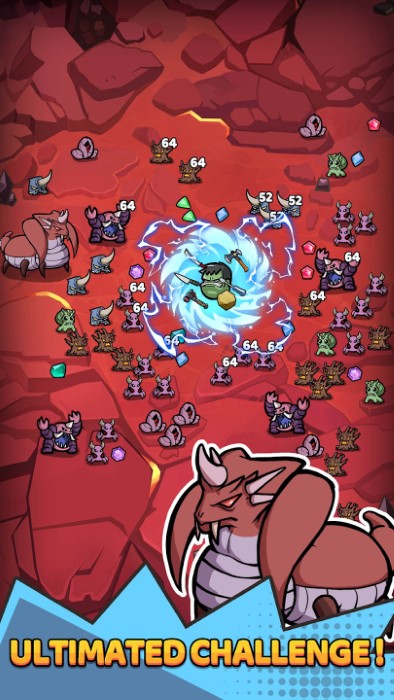 1、割草无双:面对潮水般涌来的鸡蛋军团,巧妙走位配合范围技能实现千人斩,特效全开时整个屏幕都会被蛋液特效覆盖。