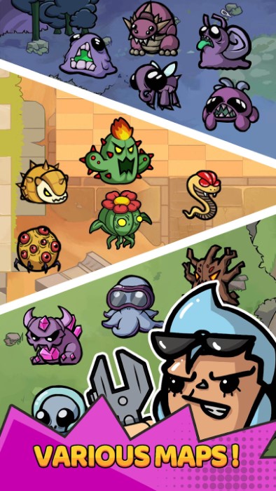 1、魔性合成:游戏内置50种武器合成公式,两把水果刀能变成电锯,三把水枪进化成高压水炮,每次合成都有意想不到的惊喜效果。