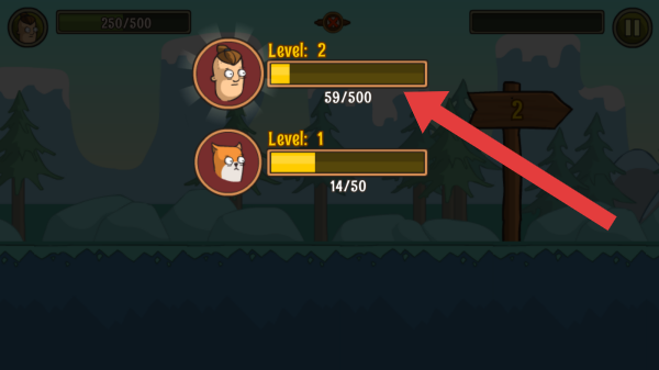 3、显示角色等级信息,获得胜利后得到了经验值59/500,狐狸的角色等级为1,经验值14/50。
