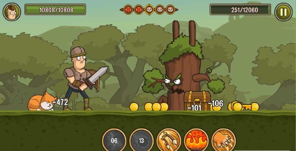 2、卷轴地图推进:沿卷轴式地图向右移动,探索沿途场景,触发敌人战斗与关卡事件,推进了冒险的进度。