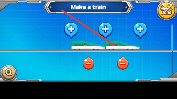 3、点Done确认,进入轨道测试,操控列车行驶,完成组装任务,解锁更多车厢。