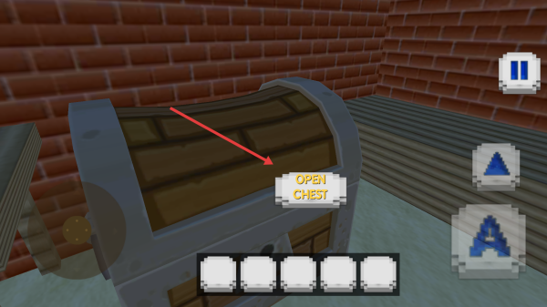 2、遇到宝箱点击OPEN CHEST,完成解锁交互,如解谜、按键,获取镐子等工具,用于后续场景。