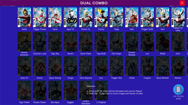 1、真实变身模拟:还原双重剑变身细节,包含特利迦与德凯两种模式切换,搭配卡牌操作复刻必杀技能,带来原汁原味的特摄体验。