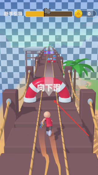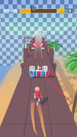 2、在木板桥赛道,提前观察障碍,及时按提示滑动,控制角色躲避,保持前进节奏。