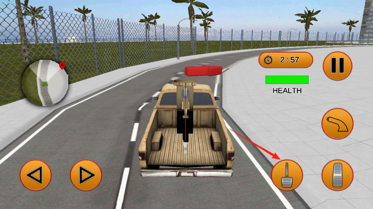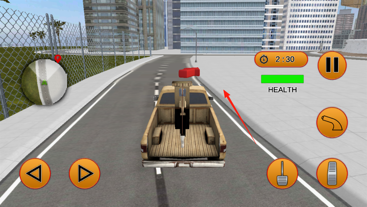 3、沿箭头指向的道路,驾驶拖车前进,留意时间和健康值,顺利完成拖运流程。