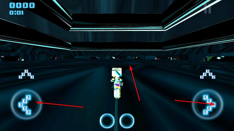 1、选择LEVEL1进入游戏,操控赛车在科幻赛道行驶,用左右按键调整方向。