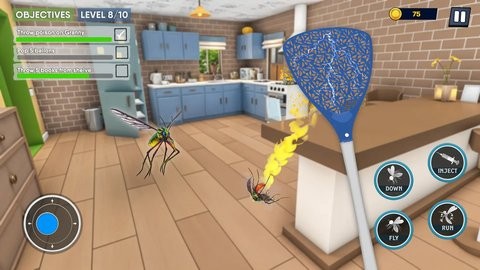 蚊子大战老奶奶作为一款独一无二的蚊子模拟器动作手游,在该游戏中你将变身成为一只人人讨厌的蚊子,需要想尽一切办法去吸血,有时候还有烦扰老奶奶的任务。你在模拟冒险的过程中也要非常小心,因为老奶奶会使用各种现代武器装备来灭杀你。