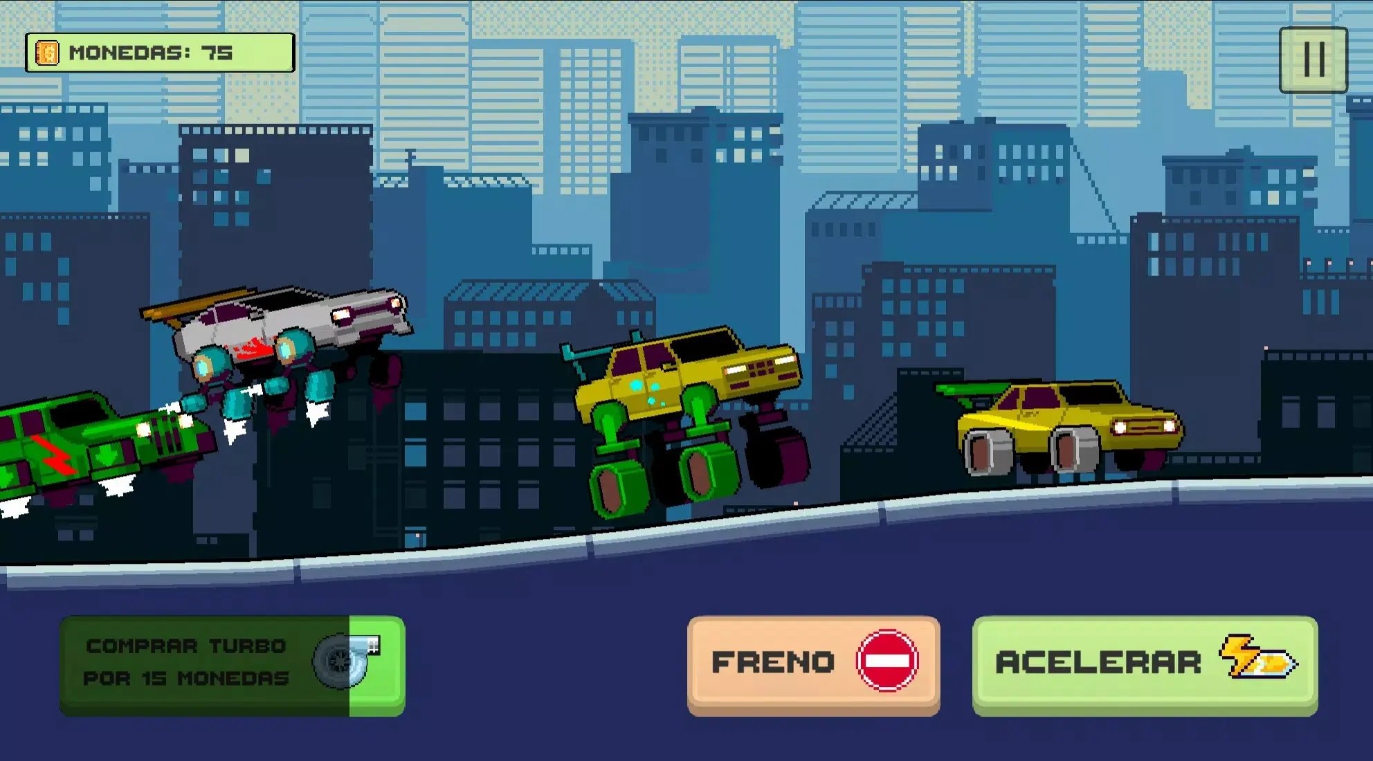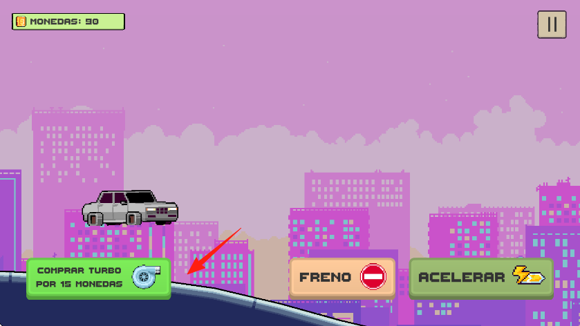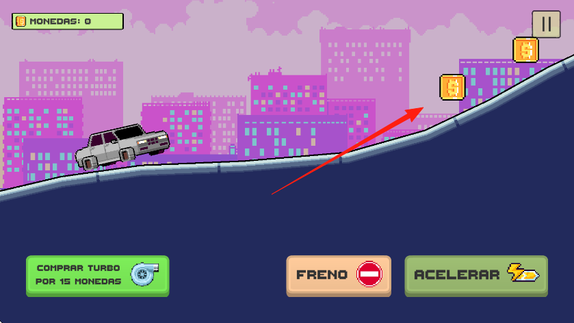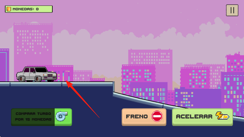 3、当金币达到15个时,点击左下角COMPRARTURBOPOR15MONEDAS”花费15货币买涡轮按钮,为汽车加装涡轮,提升加速能力,助力后续关卡。