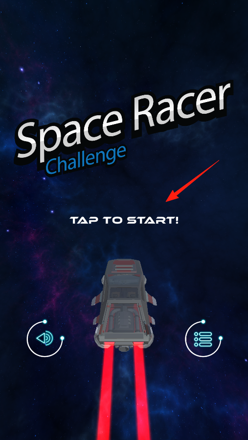 1、来到太空赛车模拟器,点击TAP TO START,就能驾驶太空车出发,在星际轨道上飞驰,开启后,要应对轨道上的各种挑战,让太空车在宇宙里尽情冲刺。