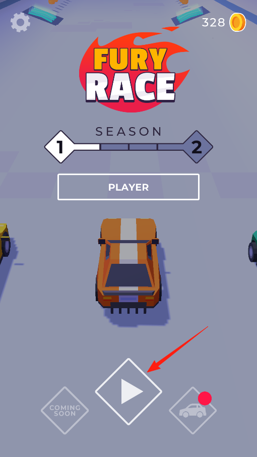 1、进入爆怒竞赛,点下方播放键,开启赛季第一关,和其他车手比拼,选好赛车,直接开跑,每赛季有新挑战,赶紧启动,让赛车飞驰。