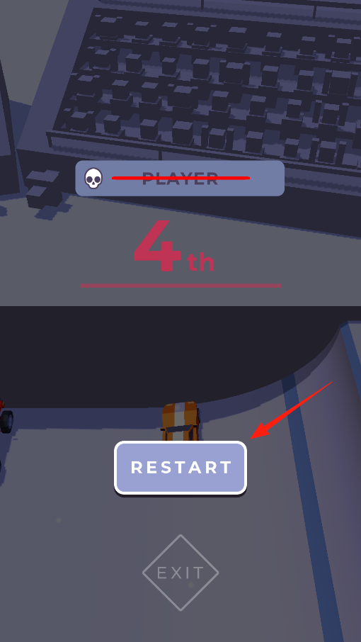3、当比赛结束拿到第4名后,界面出现RESTART按钮,点击它,能立即重启这场比赛,重新规划赛车行驶路线调整操作策略,借助重新挑战,分析之前失利原因。