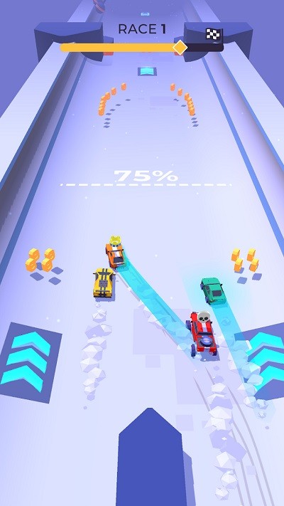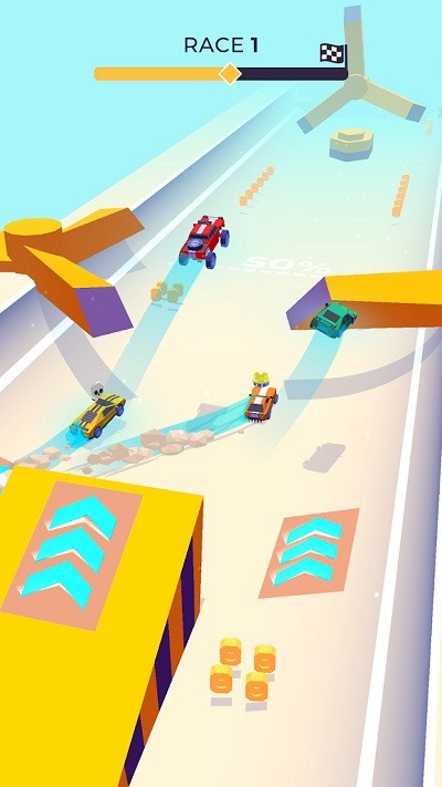 1、操控竞速比拼:需灵活操控方向与速度,凭借车技超越对手,率先冲过终点赢得胜利,整个过程考验反应能力与操作技巧,带来紧张刺激的竞技体验。