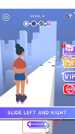 2、滑动红框左右按钮,控制角色左右移动方向。