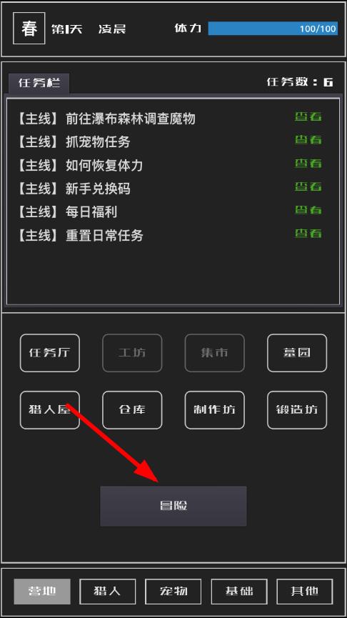 1、进入后创建猎人角色,了解文字界面中战斗、移动等基础操作方式,通过首次对战熟悉战斗机制,获取初始武器装备,开启异世界的冒险征程。