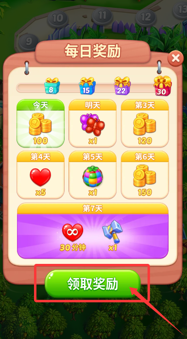 1、打开"每日福利"页面,点击确认按钮领取当天登录礼包。