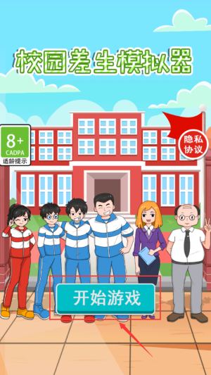 2、点击开始游戏按钮,进入校园差生模拟器。