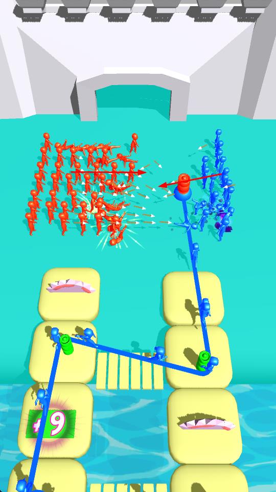 2、以多胜少击败敌人:遵循“更多人数才能成功打败敌人”的规则,玩家需不断扩大人群规模,依靠人数优势战胜对手,这种设定让扩大人群成为核心目标,增加闯关动力。