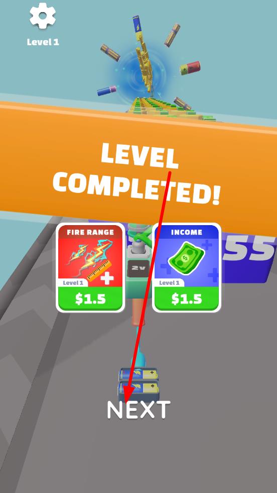 3、成功通关以后,点击“NEXT”进入下一关,用奖励升级属性内容、解锁全新道具,参与玩家PK模式,切磋跑酷技巧,提升排名位置。